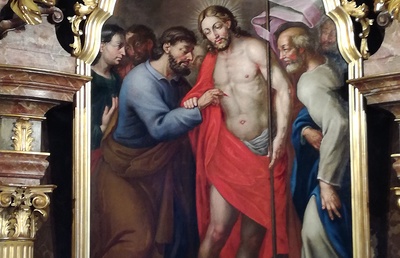 Der heilige Thomas, einer der Zwölf, geht laut den Evangelien den Weg vom Jünger Jesu über Unverständnis und Zweifel zu einem Menschen mit tiefem Glauben. Am Hochaltarbild der Pfarrkirche, gemalt von Anton Jantl (1783), ist die entscheidende Begegnung mit dem Auferstandenen dargestellt. Vermutlich war es dieser Wandel vom Zweifel zum Glauben, weshalb der heilige Thomas in der Zeit der Christianisierung unserer Gegend öfter als Patron einer Kirche zu finden ist.